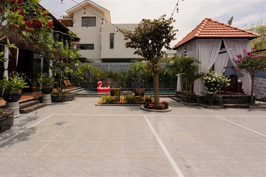 Hồ bơi riêng, sân BBQ, phòng karaoke và bàn bida phục vụ giải trí