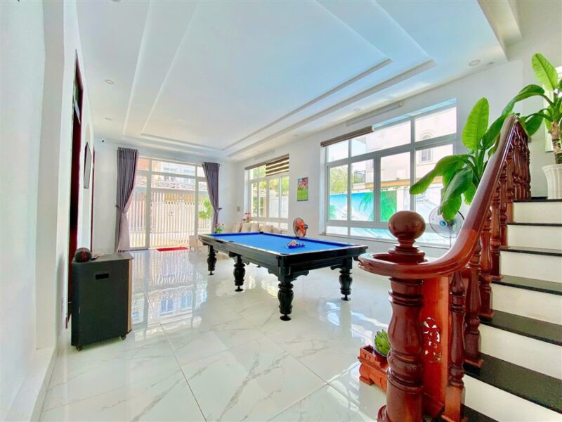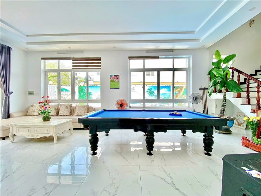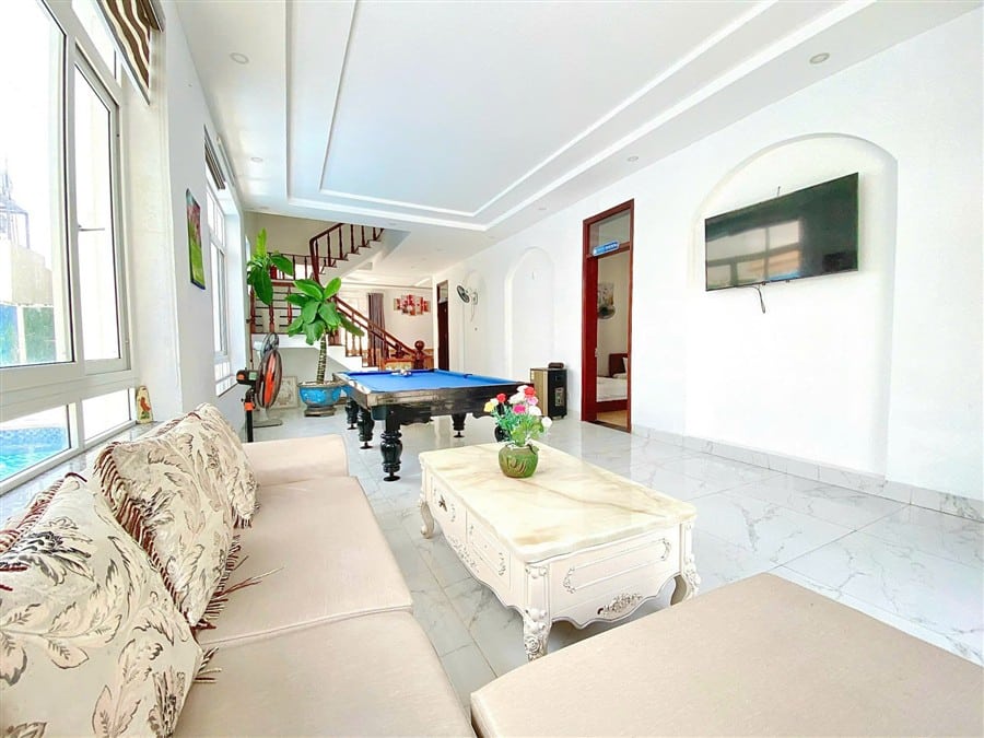 Villa còn cung cấp các tiện ích giải trí miễn phí như karaoke, bida, BBQ, giúp mọi buổi tụ họp thêm phần sôi động. Từ villa, bạn có thể thưởng thức trọn vẹn view gần biển và thành phố, vừa yên tĩnh vừa thuận tiện cho việc tham quan, mua sắm và khám phá ẩm thực địa phương.