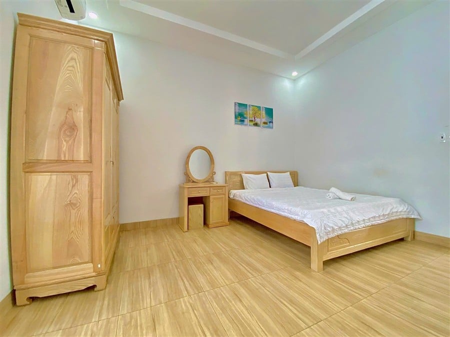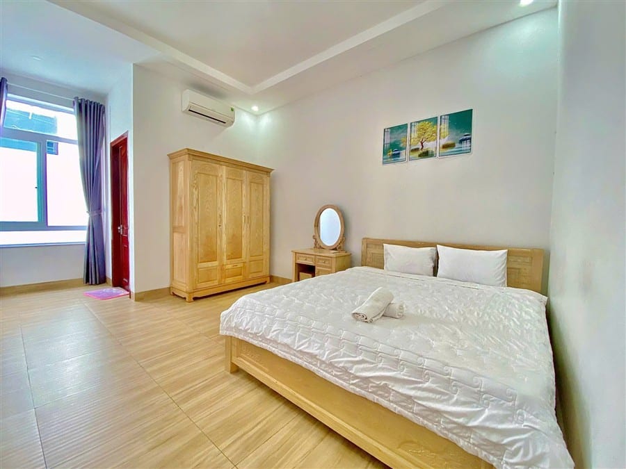 ✅ Phòng ngủ hiện đại, đầy đủ tiện nghi: giường êm ái, bàn trang điểm, gương toàn thân, tủ quần áo