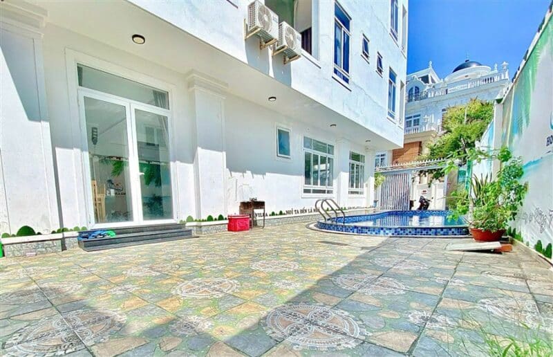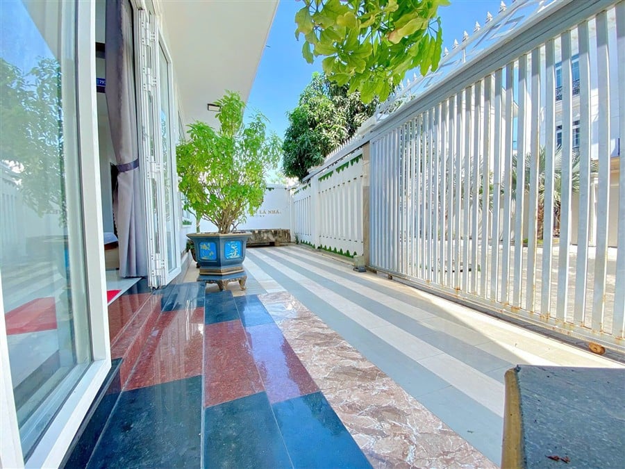 Sân vườn rộng rãi và khu vực ngoài trời thoáng mát có thể kê 5–6 bàn tiệc, lý tưởng cho các buổi tiệc sinh nhật, liên hoan, hội họp gia đình hoặc team building. Với vị trí 3 mặt tiền góc A, villa luôn tràn ngập ánh sáng tự nhiên, không gian thoáng đãng, riêng tư và yên tĩnh. Gara ô tô rộng rãi, có thể đậu 2 xe, đảm bảo thuận tiện và an toàn cho khách lưu trú.