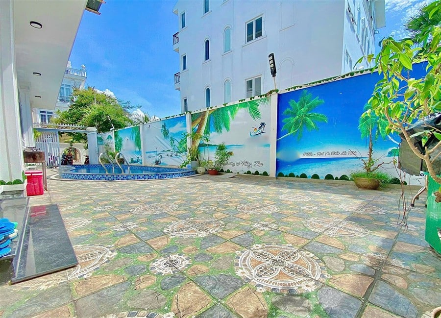 Villa được thiết kế hiện đại, kết hợp không gian mở với nội thất cao cấp, mang đến trải nghiệm nghỉ dưỡng đẳng cấp ngay khi bước vào. Trung tâm của villa là hồ bơi riêng rộng 50m² với hệ thống massage toàn thân, là nơi lý tưởng để thư giãn, bơi lội hoặc tổ chức các hoạt động ngoài trời. Khu vực hồ bơi còn trang bị phao bơi khổng lồ (300k/lượt) tạo thêm niềm vui cho cả gia đình và nhóm bạn.