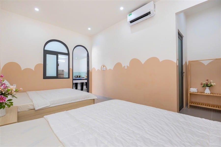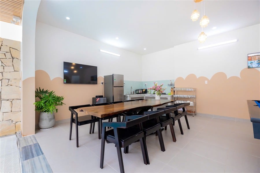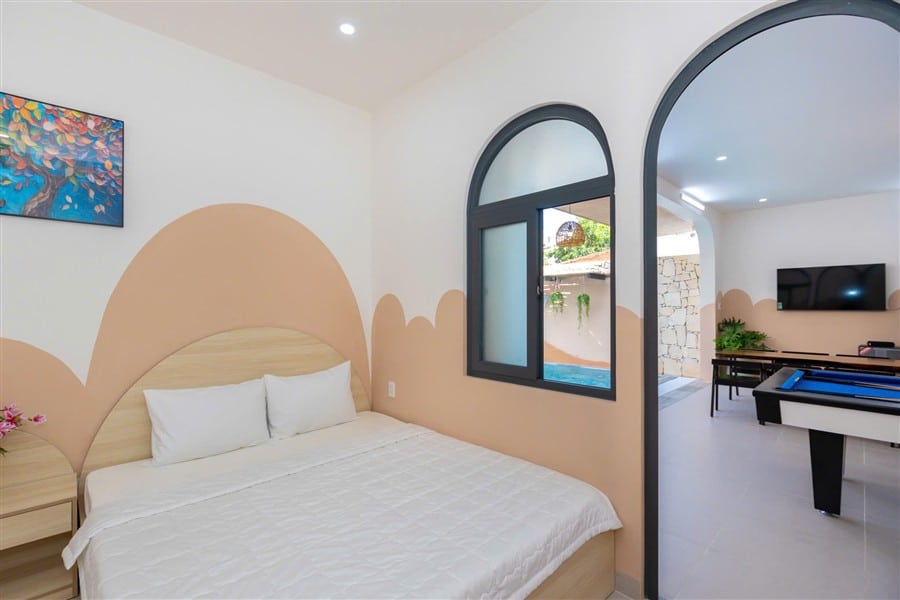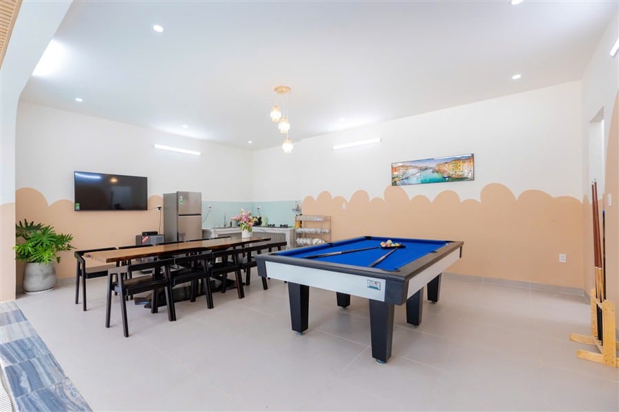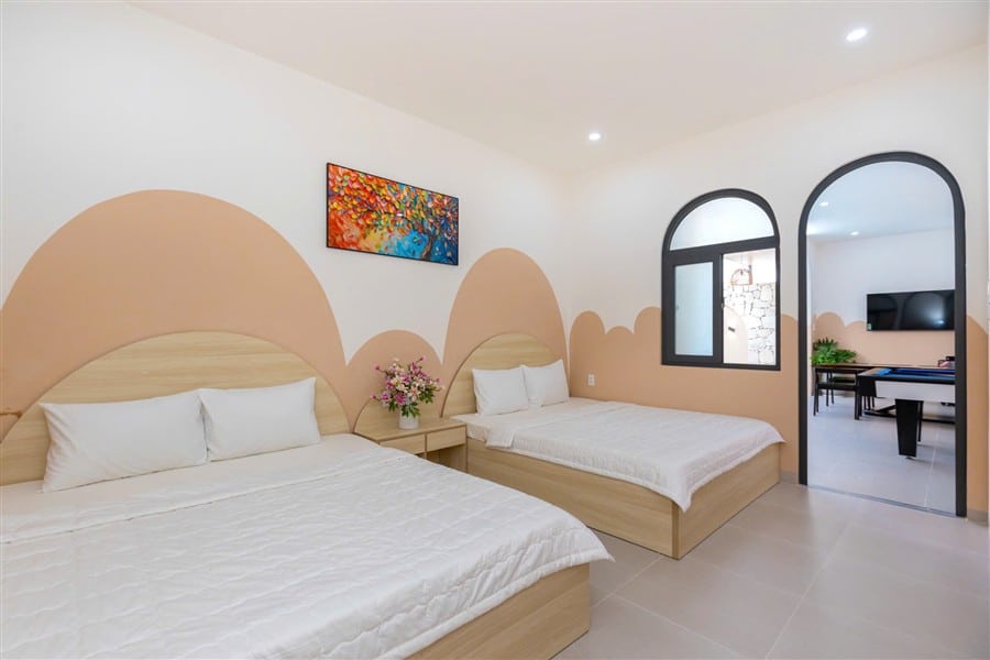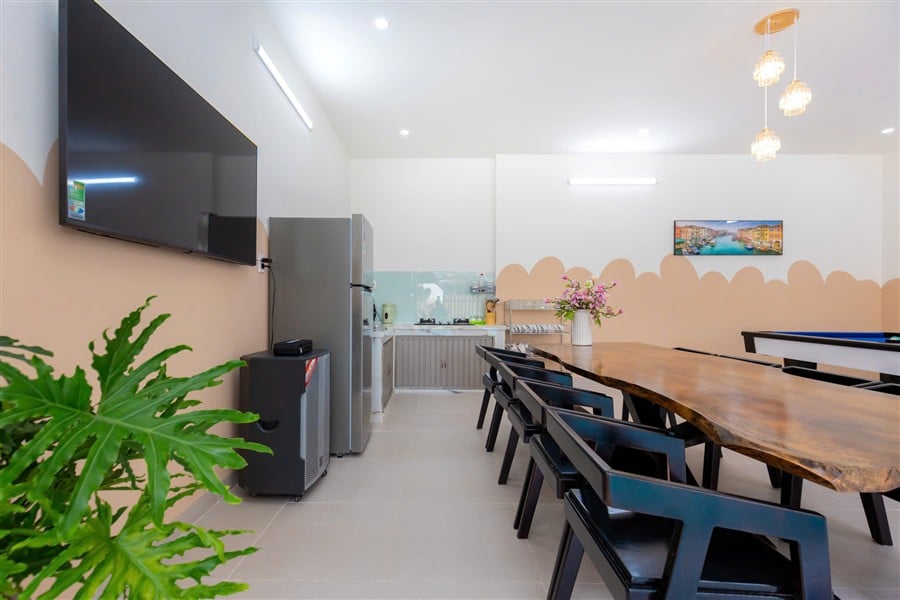 Không gian nghỉ dưỡng hiện đại, thoáng mát, sang trọng, phù hợp cho gia đình, nhóm bạn hoặc đoàn nhỏ
