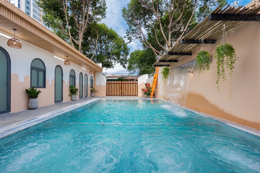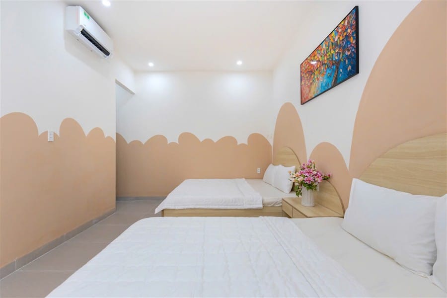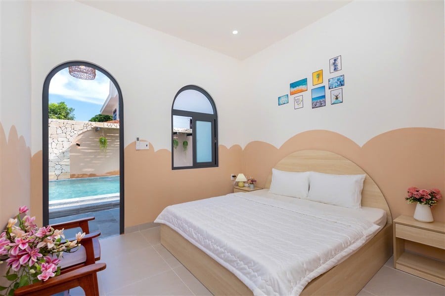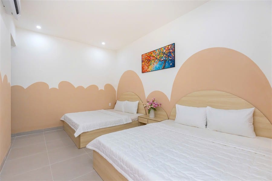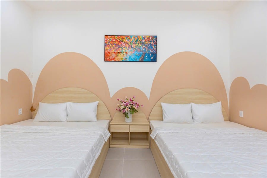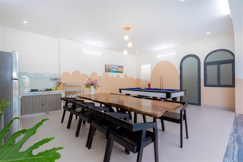 Không gian nghỉ dưỡng hiện đại, thoáng mát, sang trọng, phù hợp cho gia đình, nhóm bạn hoặc đoàn nhỏ