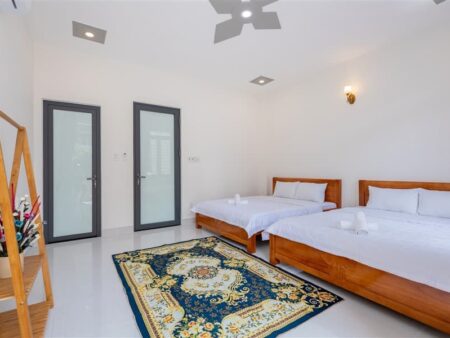 - Villa 4 phòng ngủ: Mỗi phòng được trang bị 8 giường và 4 nệm phụ, đảm bảo sự thoải mái tối đa cho du khách.