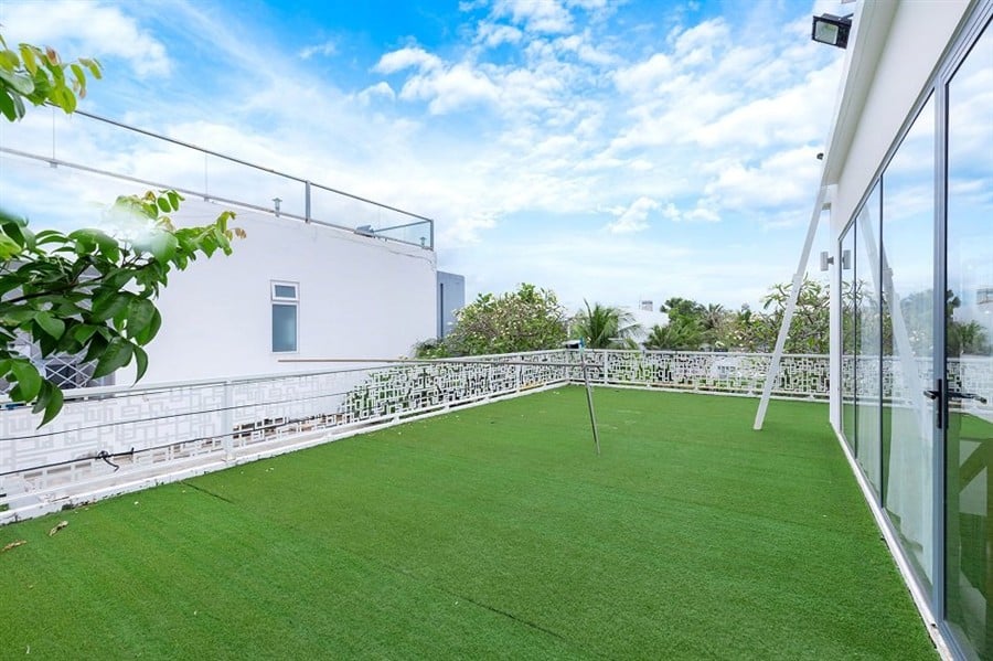 Điểm nhấn của Villa R5 Aria Resort là hồ bơi riêng 40m², bao gồm khu vực hồ cho trẻ em, giúp cả gia đình có không gian bơi lội và thư giãn an toàn. Khu vực BBQ ngoài trời được trang bị đầy đủ dụng cụ, phục vụ các bữa tiệc nướng ngoài trời cho nhóm đông khách. Villa còn có bãi đậu xe rộng rãi, thuận tiện cho xe 7 chỗ hoặc xe lớn, đảm bảo việc di chuyển và gửi xe tiện lợi.