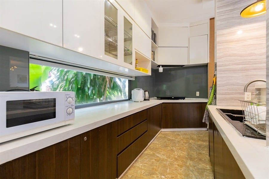 Bếp của Villa được trang bị đầy đủ dụng cụ nấu nướng và gia vị cơ bản, giúp du khách dễ dàng tự chuẩn bị bữa ăn. Không gian nghỉ dưỡng tại Villa được bố trí khoa học, tạo cảm giác thoải mái, riêng tư và sang trọng. Vị trí gần biển và các tiện ích xung quanh giúp du khách vừa nghỉ dưỡng vừa dễ dàng tham quan, mua sắm và ăn uống.
