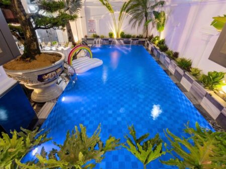 Tiện ích giải trí đầy đủ: hồ bơi rộng, karaoke, sân tiệc, không gian sinh hoạt thoải mái.